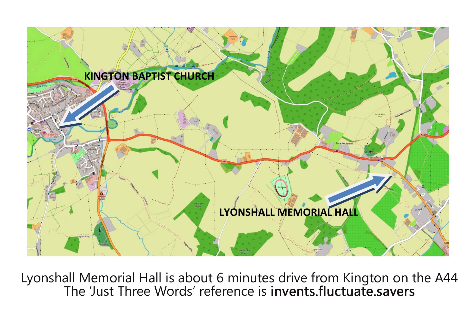 With our church building in Kington having to be sold we have decided to hold our Sunday morning service in Lyonshall Memorial Hall. Initially this will be for a two month trial period, beginning on Sunday 12th April until the end of May. Our service will then begin at 11 am.